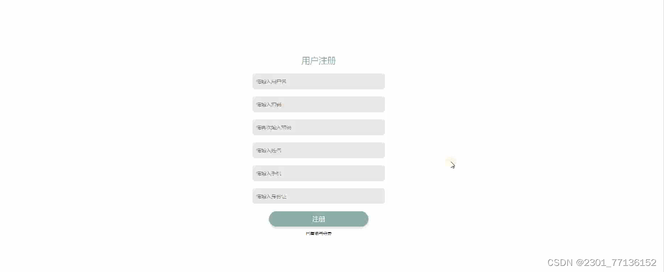 用户注册,在用户注册页面通过填写用户名,密码,确认密码,姓名,手机,身份证等信息进行注册操作,如图所示。