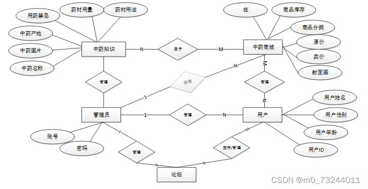 下面是整个中药知识分享网站系统中主要的数据库表总E-R实体关系图。