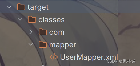 第二种:没有在pom.xml文件中添加与resources中文件相关的配置,这样不会编译后缀.xml等其它后缀的文件