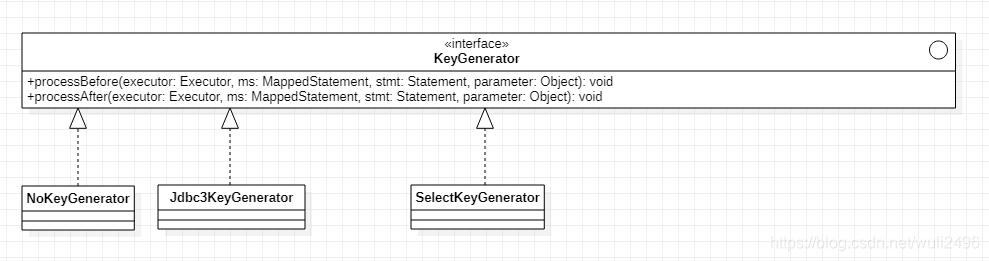 key Generator主要是用于insert操作,其接口定义为public interface KeyGenerator {void processBefore(Executor executor, MappedStatement ms, Statement stmt, Object parameter);void processAfter(Executor executor, MappedS