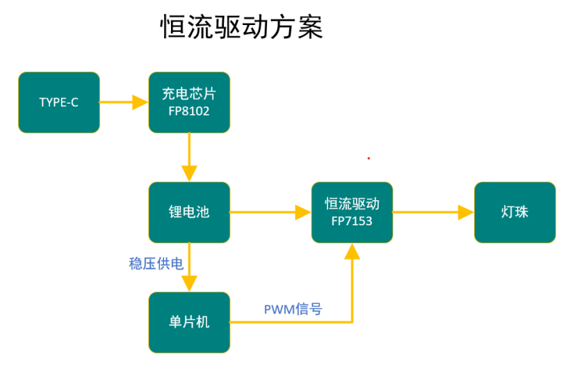 恒流驱动方案不需要串电阻,恒流驱动电路直接驱动灯珠发亮,单片机输出的PWM信号经过恒流驱动电路去调整输出电流。