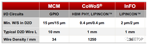 对于并行LIPINCON接口,与信号串扰相关的同时开关噪声(SSN)是一个问题。对于上面说明的屏蔽(CoWoS)和非屏蔽(InFO)RDL信号连接,TSMC给出的结果说明了这种低摆幅信令的串扰非常易于管理。