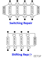 异种2.5D封装的开发依赖于已知良好芯片/小芯片(KGD)的集成。尽管如此,通过增加冗余通道可以提高最终包装的组装后产量,该冗余通道可以在包装测试后选择(理想的是内置自检)。台积电的演示文稿包括可以集成到小芯片设计中的冗余通道拓扑的示例。下图说明了用于将冗余的硅通孔(TSV)插入互连的两种架构。当设计小芯片之间的接口时,这将是封装良率与电路开销的折衷。