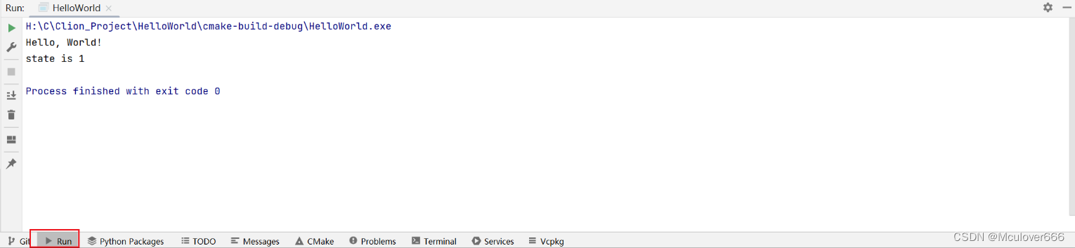点击运行按钮或者按快捷键,运行可执行文件: 底部Run栏显示编译输出结果: