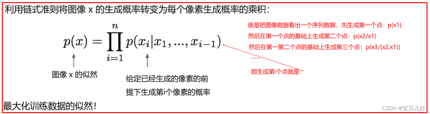 所以上图的公式就是最大概率的表示我这批样本图像各个像素点之间的条件概率。但这个公式我们是手写不出来的,所以我们要用神经网络来拟合这个公式,就是要训练一个神经网络,让这个网络去最大化的拟合这个公式。