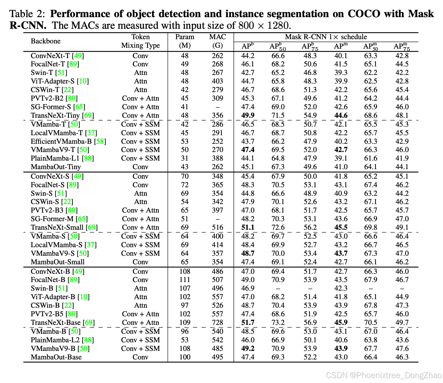 本工作声明, Mamba 对图像分类任务冗余,表现不如去除SSM的Mamab——MambaOut好;但在检测与分割任务中,MambaOut 无法匹敌前沿视觉 Mamba 模型,揭示 Mamba 在长序列视觉任务中的潜在价值。