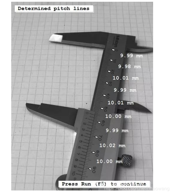 Halcon例程里使用标定和图像测量得到结果图如上。使用halcon的mesure助手可以轻松的进行图像测量。