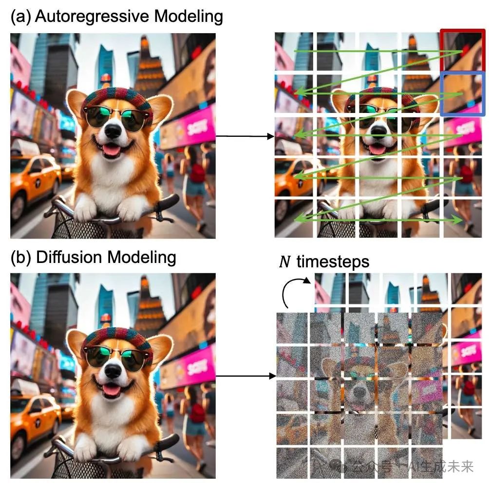 当前的大型视觉模型大多直接从自然语言处理架构中改造而来,使用低效的自回归技术,这种方法破坏了视觉数据中至关重要的空间关系,并且在高维度视觉数据的生成任务中表现有限。