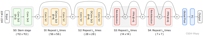 预激活:MBConv和Transformer都使用预激活结构,即,其中Module表示MBConv、自注意力或FFN模块;Norm表示MBConv中的BatchNorm或自注意力/FFN中的LayerNorm。GELU作为MBConv块和Transformer的激活函数。