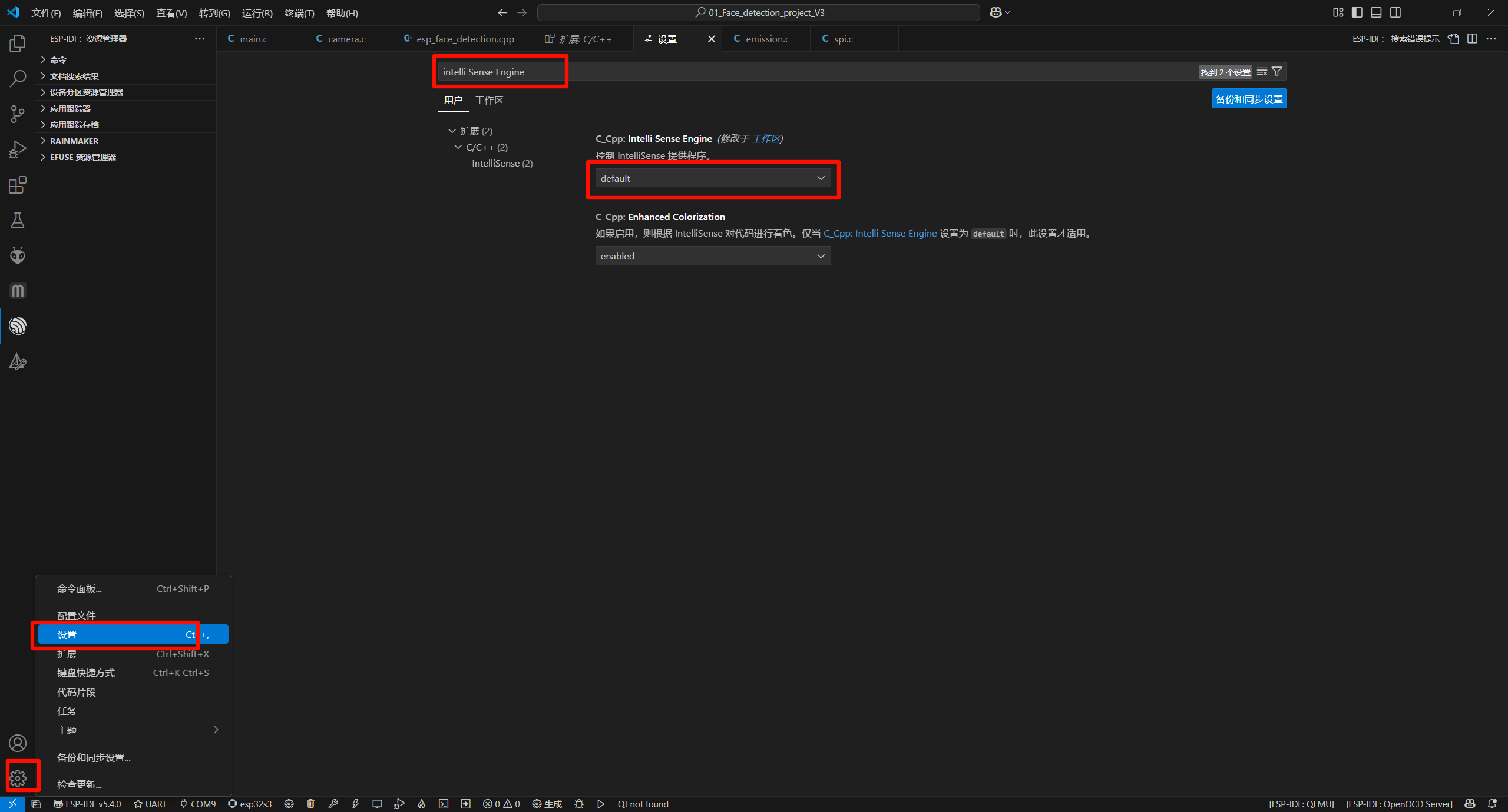 但是我这个试了这个方法之后不成功,最后发现,可能是我最近下载了很多的QT插件,某个插件冲突了有问题,我就将插件删除了,然后重启VScode就成功了。也可以不使用快捷键,设置-搜索intelli Sense Engine-选择default.直接快捷键Ctrl+Shift+P,搜索intelli Sense Engine,选择default。在网上看到下述方法,先试了一下。