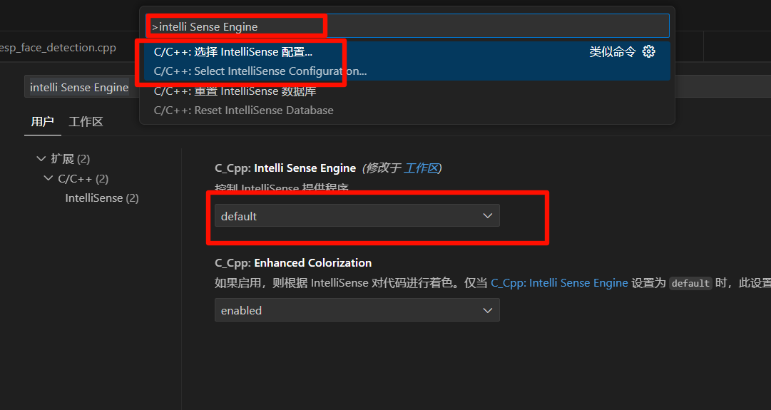直接快捷键Ctrl+Shift+P,搜索intelli Sense Engine,选择default