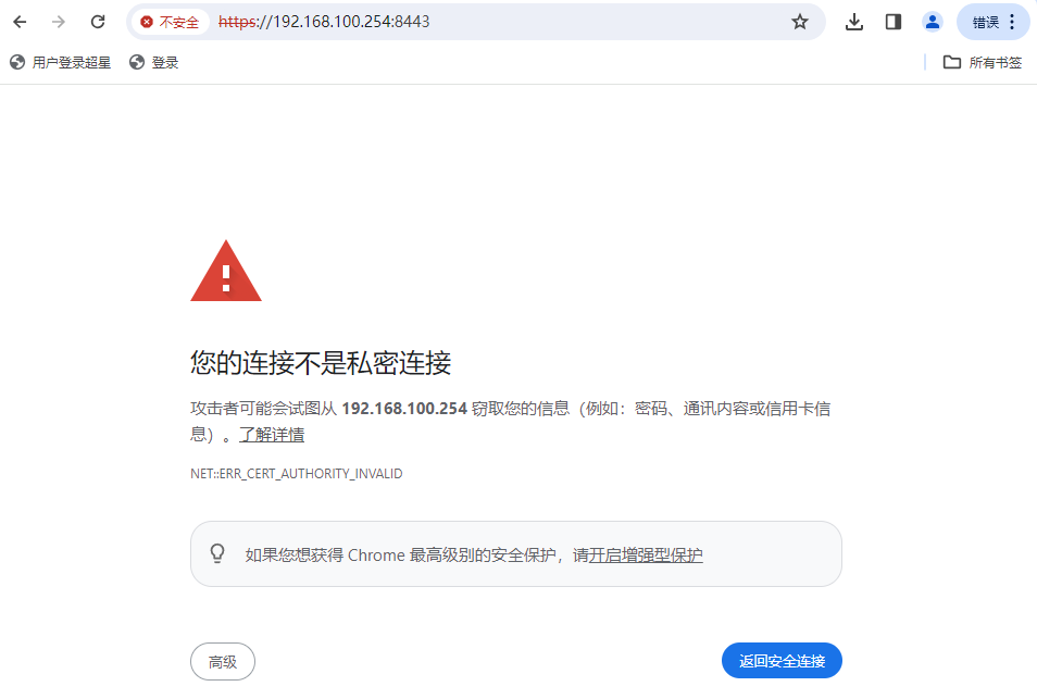 12 在浏览器输入接口IP地址测试登录,点机高级再点击继续即可到输入用户名和密码界面