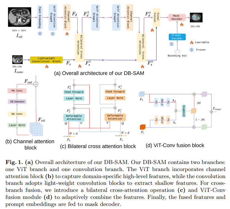 为了执行跨分支特征融合,设计了一个双边交叉注意力块和一个ViT卷积融合块,动态结合两个分支的不同信息,用于掩模解码器。