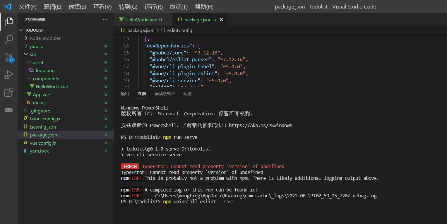 eslint比较麻烦 咱们用不惯 就直接删掉吧