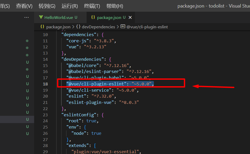 删除此段代码:"@vue/cli-plugin-eslint": "~5.0.0",