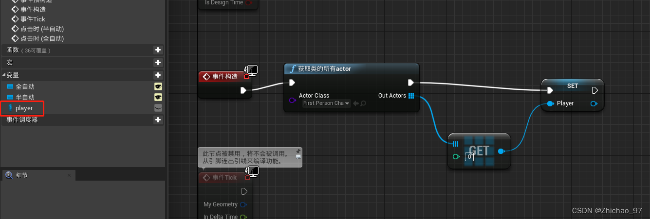 将变量 是否能够全自动 拖入事件图表中,再将是否能够全自动引脚拖入自定义事件,这样就可以把变量通过自定义事件传出去来设置