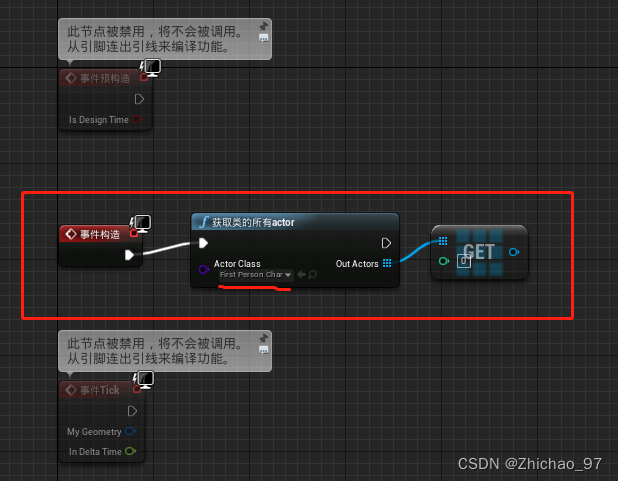 创建如下节点,get 0 表示获取第一个角色(也是这里唯一一个角色)