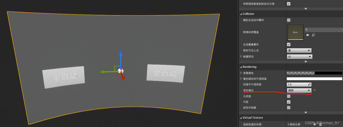 在视口界面中可以看到红色的箭头就是控件交互组件