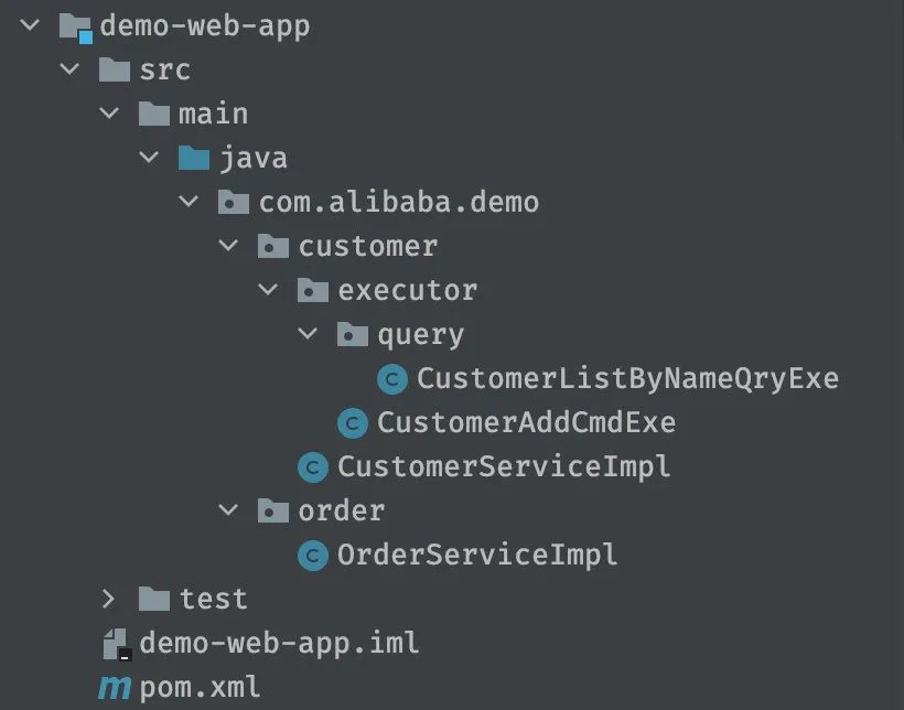 可以看到,首先是按照不同的领域(customer 和 order)分包,里面则是三种主要的文件类型:
