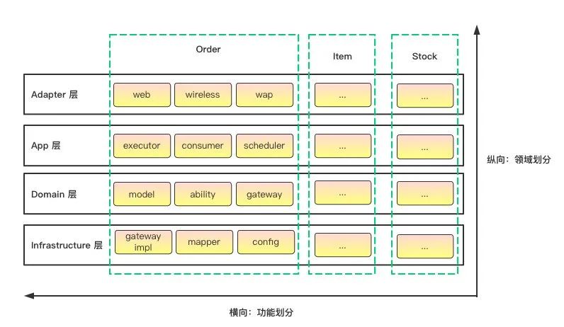 前面的包定义,都是功能维度的定义。为了兼顾领域维度的内聚性,我们有必要对包结构进行一下微调,即顶层包结构应该是按照领域划分,让领域内聚。