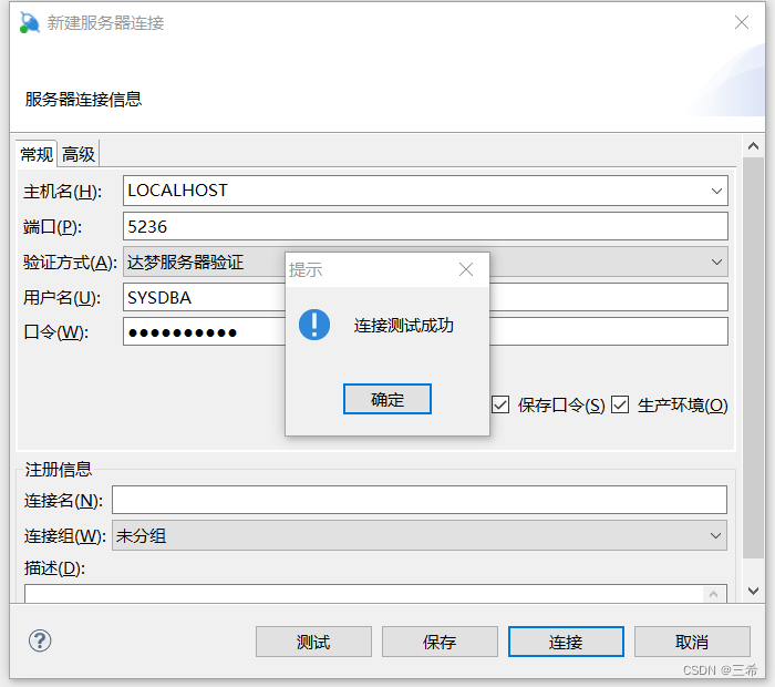 默认用户名 SYSDBA