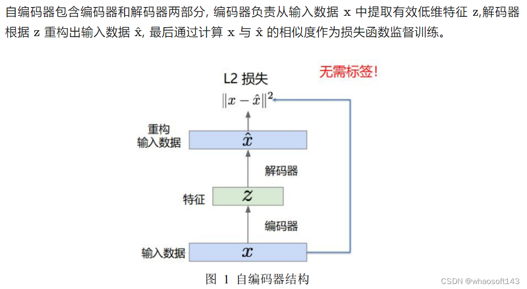 输入无标签数据从中提取有效低维特征, 并利用低维特征重构出输入数据。