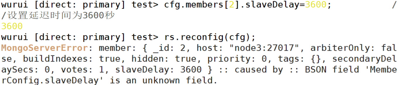 cfg.members[2].secondaryDelaySecs = 3600; // 设置延迟时间为3600秒