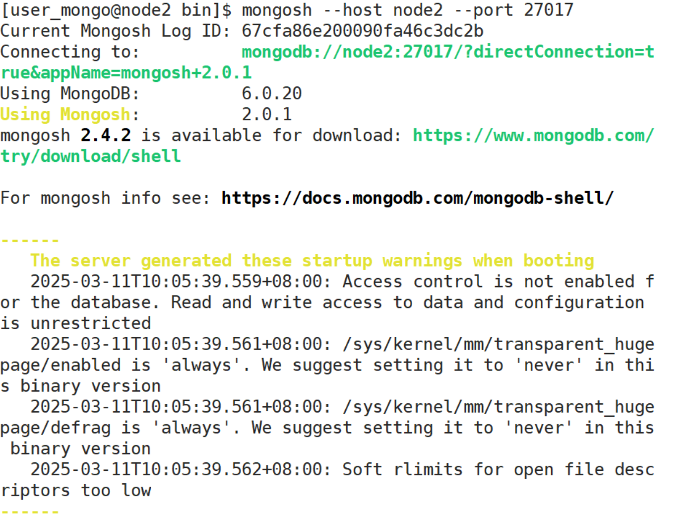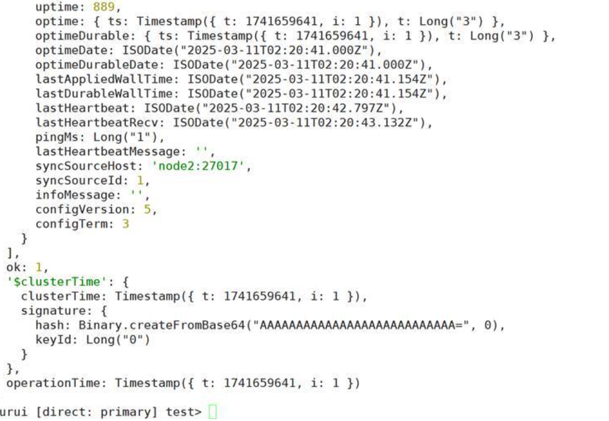 ./mongosh --host node2 --port 27017