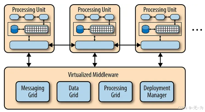 这种模式特别用于解决并发性和可扩展性问题,消除了中央数据库的约束,并使用复制的内存数据网格。