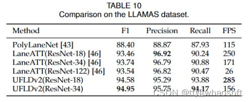 对于LLAMAS数据集,我们在表10中显示了结果。可以看出,我们的方法也取得了最好的性能和最快的速度。