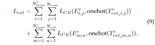 其中 是交叉熵损失, 为第i个车道分配给行锚和第j个行锚的预测,为对应的分类标签 ,为第m个车道分配给列锚和第n个列锚对应的分类标签, 对应的分类标签,为独热编码函数。由于类别是有序的,因此预测的期望可以看作是平均投票结果。为方便起见,我们将期望表示为: