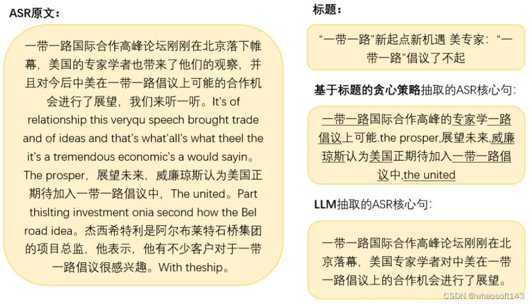 (图 27:基于 LLM 的 ASR 核心句抽取效果对比示例)