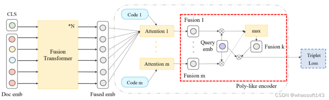 目前业界普遍采用双塔交互的方式计算多模态匹配特征,然而双塔的方式由于交互阶段比较晚期,效果较单塔的方式有较大的差距。Poly encoder 提出一种基于半交互的方式,通过引入 query 信息指导 doc 侧最后一层的加权融合,实现较双塔匹配更好的效果。