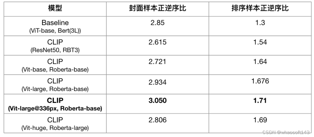 (表 1:ChineseCLIP 模型 ZeroShot 下封面样本和排序样本测试集的 PNR 指标)