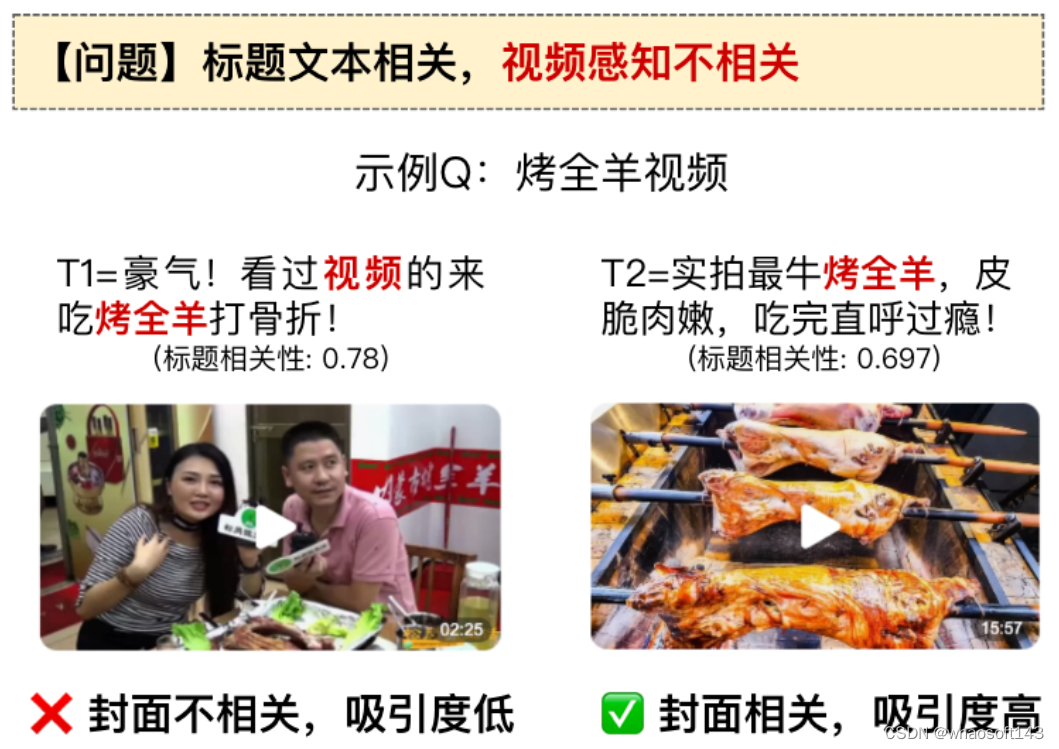视频封面是视频资源最重要的摘要,体现在引入封面模态能够解决传统相关性技术依赖标题文本存在的局限性。同时,封面对用户的吸引和点击行为有着至关重要的影响。