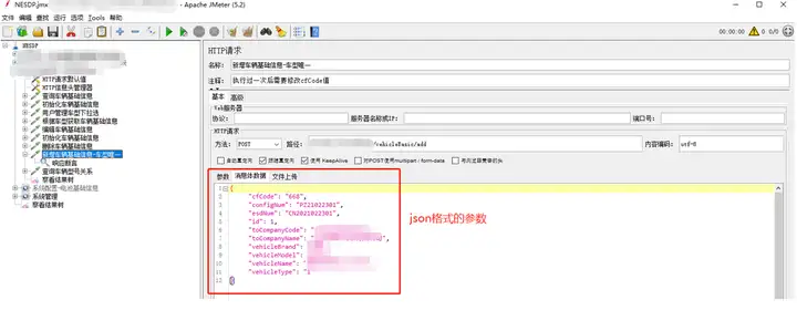 该元件是针对传入参数为json格式,需添加名称为Content-Type,值为application/json
