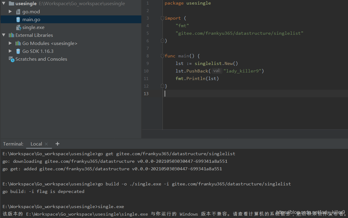 run命令编译并运行程序