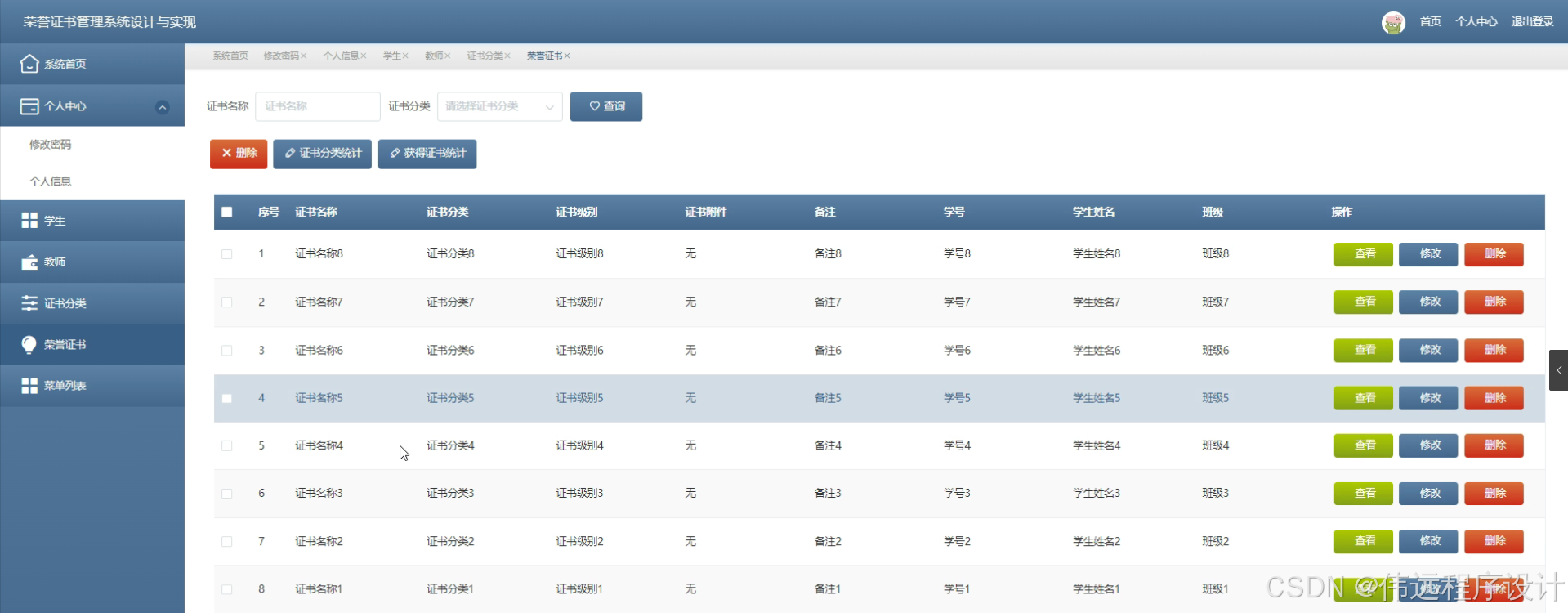 该系统采用python语言,采用了django框架,运用B/S来构建系统的框架,数据信息的储存利用MySQL数据库来进行。以用户友好的界面和强大的数据处理能力为特点,旨在简化管理流程,提高信息检索效率。管理员拥有最高权限,可进行系统首页监控、个人中心数据维护、学生与教师信息管理以及证书分类和荣誉证书详情的全面控制。教师和学生则能通过个人账户访问系统首页,并在个人中心内修改资料,同时查看自己获得的荣