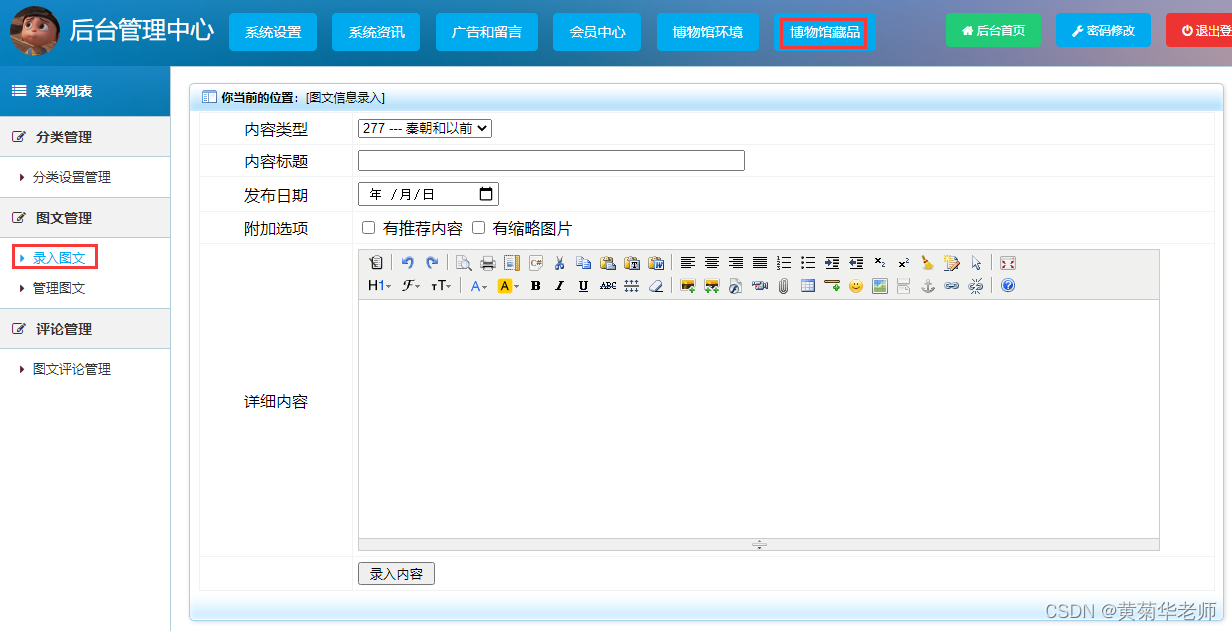 博物馆藏品分类设置:录入和管理博物馆藏品分类
