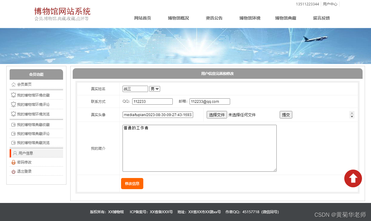 用户信息:姓名、联系方式、邮箱、头像、简介、介绍等,支持随时修改;用户注册的信息后台管理员可见;后台管理员可以删除。