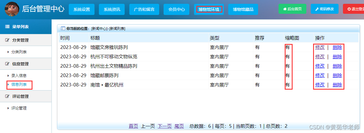 管理博物馆藏品:查看已录入内容列表,支持删除和修改