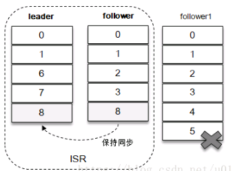 参考上图,某种状态下,follower2副本落后leader副本很多,并且也不在leader副本和follower1副本所在的ISR(In-Sync Replicas)集合之中。